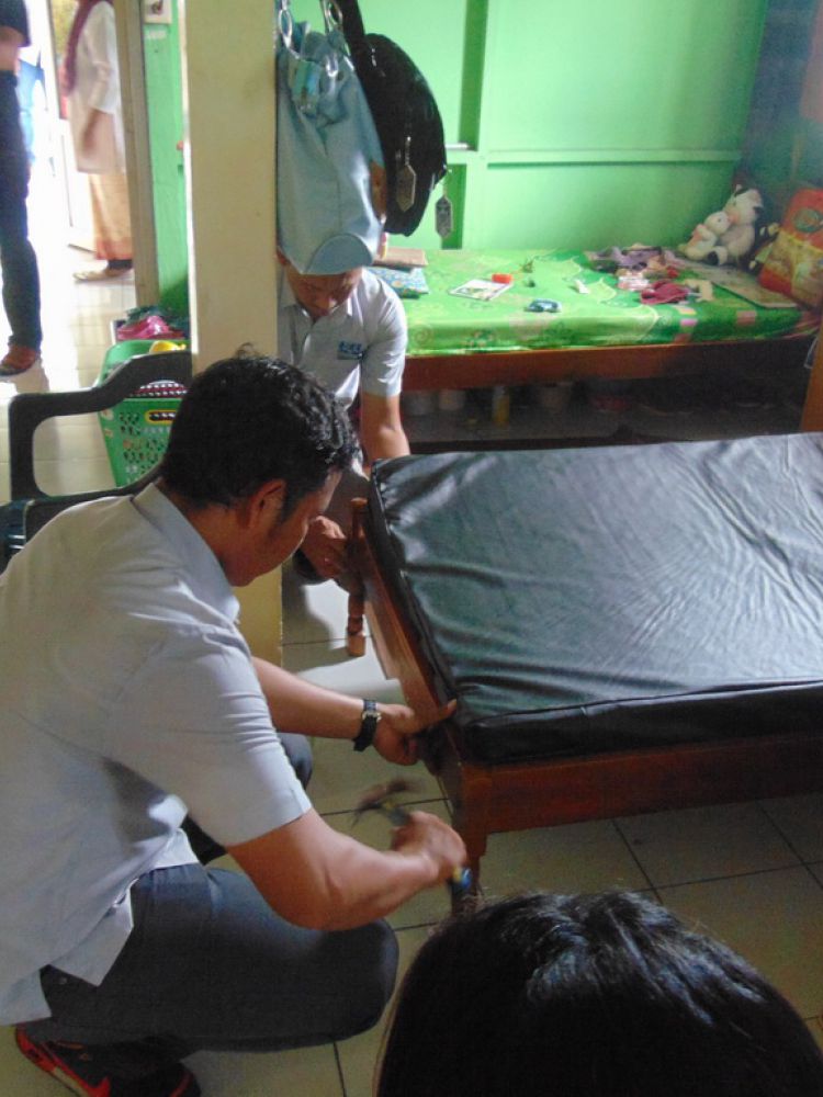 Distribution of bed mattress to Al – Mukmin Orphanage Balikpapan. Distribution of groceries to Al-Mukmin Orphanage Balikpapan. Building renovation for Nurjannah Orphanage Balikpapan: replacing the ceiling, 2 bath rooms, paint the building, kitchen renovation, replace all broken electrical installation, install fans.